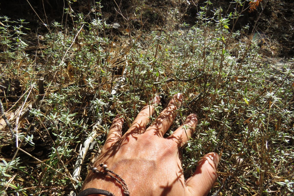 De camino hacia la fuente del miradero encontramos diferentes plantas arómaticas y medicinales como el tomillo blanco, la jara esteparia, el enebro, la santolina, el llantén, el pino.. las cuales usaremos para hacer las dinámicas y los juegos sensoriales.