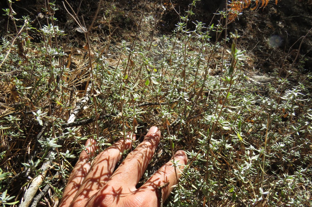 De camino hacia la fuente del miradero encontramos diferentes plantas arómaticas y medicinales como el tomillo blanco, la jara esteparia, el enebro, la santolina, el pino… las cuales usaremos para hacer los sahumerios.
