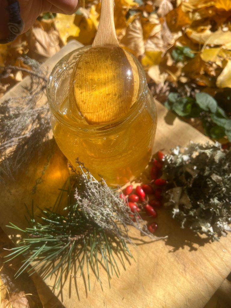 La planta protagonista de este jarabe será el tomillo, que por sus propiedades bactericidas y expectorantes, será un gran aliado en casos de resfriado. Otra planta de temporada muy interesante para añadir a este melito sería el escaramujo, ya que su alto contenido en vitamina C reforzará nuestro sistema inmune. El llantén y el pino también harían una buena sinergia en nuestro preparado.